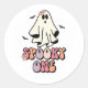 Pegatina Redonda groovy Ghost retro Halloween Spooky Un cumpleaños