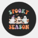 Pegatina Redonda Groovy Halloween Curte Floral Fantasma Sensación W