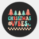 Pegatina Redonda Groovy Merry Christmas Vibes Hippie Family