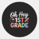 Pegatina Redonda Groovy Oh Hey Primer Grado Primer Día De La Escuel