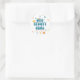 Groovy Un estilo retro pegatinas de fiesta de cumpleaños con franjas amarillas, naranjas y azules.