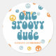 Pegatina Redonda Groovy One Retro Boy cumpleaños Paper Placas Class