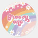 Pegatina Redonda Groovy One Retro Rainbow Primer cumpleaños