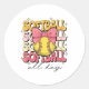 Pegatina Redonda Groovy Softball Coquette Bow Softball Lover Softba