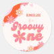 Pegatina Redonda Groovy Un Primer Fiesta Boho Retro Daisy