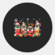 Pegatina Redonda Group Santa Reindeer Pugs In Coffee C Christmas