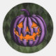 Pegatina Redonda Grunge verde de calabaza morada de Halloween