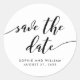 Pegatina elegante de "Save the Date" que presenta las palabras "Save the Date" en una escritura cursiva relajada en negro sobre un fondo blanco.