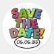 Pegatina Redonda GUARDAR LA FECHA Fun Retro Libro Pop Art