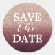 Pegatina Redonda Guardar la fecha Rosa Boda Purpurina de Borgoña Or