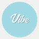Disfruta de una moda retro con este pegatina "Vibe". Este pegatina, con un guión blanco sobre un fondo azul claro, ofrece un ambiente relajado a los regalos envueltos, papelería y bolsos de fiesta.