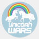 Pegatina Redonda Guerras de Unicornio con arcoiris