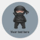 Adorable gorgote pero temeroso parece un pequeño ninja, vestido con ropa negra y llevando katana - tradicional espada japonesa.