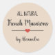 Moderno pegatina "macarons franceses" con una fuente negra en un fondo beige adornado por un lindo corazón rojo. Texto personalizado.