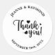 Pegatina Redonda Guión blanco de la boda moderna personalizada Grac
