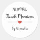 Moderno pegatina "macarons franceses" con una fuente negra en un fondo blanco adornado por un lindo corazón rojo. Texto personalizado.