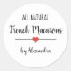 Moderno pegatina "macarons franceses" con una fuente negra en un simple fondo blanco adornado por un lindo corazón rojo. Texto personalizado.