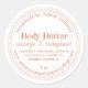 Etiqueta moderna, rústica y simple de mantequilla corporal casera orgánica con el texto hecho a mano, y tu sitio web de negocios en tipografía moderna de color naranja quemado y elegante caligrafía manuscrita escrita en un fondo blanco. Simplemente añade tu nombre, sitio web de negocios, el nombre del producto, los ingredientes y el peso a la etiqueta y estás listo para vender tus productos de belleza orgánicos hechos a mano! Diseñado exclusivamente para su pequeña empresa por Happy Dolphin Studio. Si necesita ayuda o productos coincidentes, por favor contáctenos en happydolphinstudio@outlook.com.