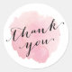 Pegatina Redonda Guión de color de agua rosado Gracias