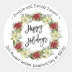 Pegatina Redonda Guión de Felices Fiestas Monograma Poinsettia Chic