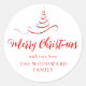 Pegatina Redonda Guión de navidad del árbol de cinta rojo plateado