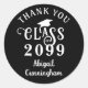 Pegatinas personalizadas de agradecimiento para fiesta de graduación de colores personalizados o sellos de sobre con un diseño tipográfico de año de clase elegante y el nombre de su graduado. Todo el texto, gráfico de gorra de graduación y los colores de fondo se pueden cambiar a los colores de la escuela o a los colores del tema de la fiesta coordinada en EDITAR (mostrado en blanco sobre negro). ASISTENCIA: Para obtener ayuda con la modificación del diseño o personalización, cambio de color, transferencia del diseño a otro producto o si desea artículos coordinados, comuníquese con el diseñador ANTES DE REALIZAR EL PEDIDO a través de la pestaña de MENSAJE de chat de Zazzle a continuación o envíe un correo electrónico a makeitaboutyoustore@gmail.com.