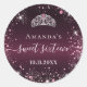 Pegatina Redonda Guión de nombre tiara rosa dulce 16 burgundy