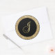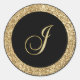 Guión dorado monograma J sobre fondo negro con círculo dorado.