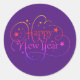 Morado Rainbow Modern Elegant Feliz Año Nuevo Script, Pegatina de Ronda Clásico Fantástico para celebrar y Fiestas.