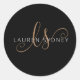 Pegatina Redonda Guión femenino de oro negro moderno monogramado