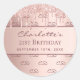 Pegatina Redonda Guión inicial del monograma de oro rosa de cumplea