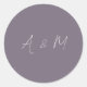 Monograma minimalista Moda de moda Tipografía Boda Pegatina redondo clásico en Boho Dusty Purple