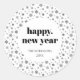 Pegatina Redonda Guión moderno Feliz Año Nuevo Navidad Blanco negro