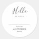 Estos pegatinas de reunión familiar de moda presentan un diseño de escritura a mano contemporáneo con el nombre de su familia personalizado en tipografía moderna. Los pegatinas dicen "hola" junto con una línea para que cada miembro de la familia escriba su nombre. Decoración fiesta perfecta para su celebración familiar moderna.