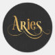 Pegatina Redonda Guión rápido Rótulo Zodiac Aries Gold sobre negro
