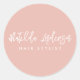 Pegatina Redonda Guión rosa moderno mínimo y elegante