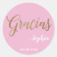 Pegatina Redonda Guión rosa y dorado personalizado de Gracias