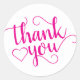Pegatina Redonda Guión rosado simple | Magenta Heart Gracias