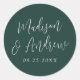 Pegatina Redonda Guión simple Boda verde forestal personalizado