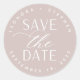 Una forma elegante de sellar los sobres de fecha guardados, estos pegatinas de moda en la función de brillo neutro pálido "guardar la fecha" en el centro con sus nombres y fecha boda curvada en un diseño circular. Diseñado para coincidir con nuestra boda Smooth Script, guarde la colección de fechas.