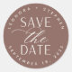Una forma elegante de sellar tu guardar los sobres de fecha, estos pegatinas de moda en color termostato neutro color café terracota función "guardar la fecha" en el centro con tus nombres y fecha boda curvada en un diseño circular. Diseñado para coincidir con nuestra boda Smooth Script, guarde la colección de fechas.