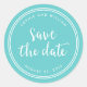 Elegante redondo Nautical Save the Date pegatina con un borde de franjas blancas y la palabra "guardar la fecha" en un guión de brocha a la moda con un fondo turquesa. Úsalo para sellar los sobres. Consulte otros elementos del boda aquí https://www.zazzle.com/rosewoodandcitrus/gifts?cg=196540141241316965&rf=238364477188679314 Personalízalo con sus detalles reemplazando el texto del marcador de posición. Para obtener más opciones, como cambiar el tipo de letra, el tamaño/color del texto, el espaciado entre letras o para contratar o expandir el texto curvo, haga clic en el botón "Personalizar". *Tenga en cuenta que la marca de agua Zazzle que aparece en la vista previa del zoom NO aparecerá en el producto impreso final © Rosewood and Citrus