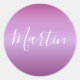 Pegatina Redonda Guión violeta púrpura y blanco Personalizado