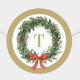Pegatina Redonda Guirnalda clásica de Navidad Monograma inicial en