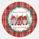 Pegatina Redonda Guirnalda de Navidad de Gnomos Rojos con Bayas de