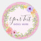 Pegatina Redonda Guirnalda floral caprichosa y madera rústica rosa