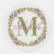 Pegatina Redonda Guirnalda floral personalizada con monograma de ap