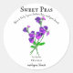 Pegatina Redonda Guisantes dulces morados Flores arte con texto