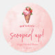 ¡Esto es un adhesivo para fiesta de despedida de soltera de 'She's Been Scooped Up!' de helado de fresa!