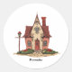 Pegatina Redonda Hada de hadas de la casa rosada de la vieja vieja